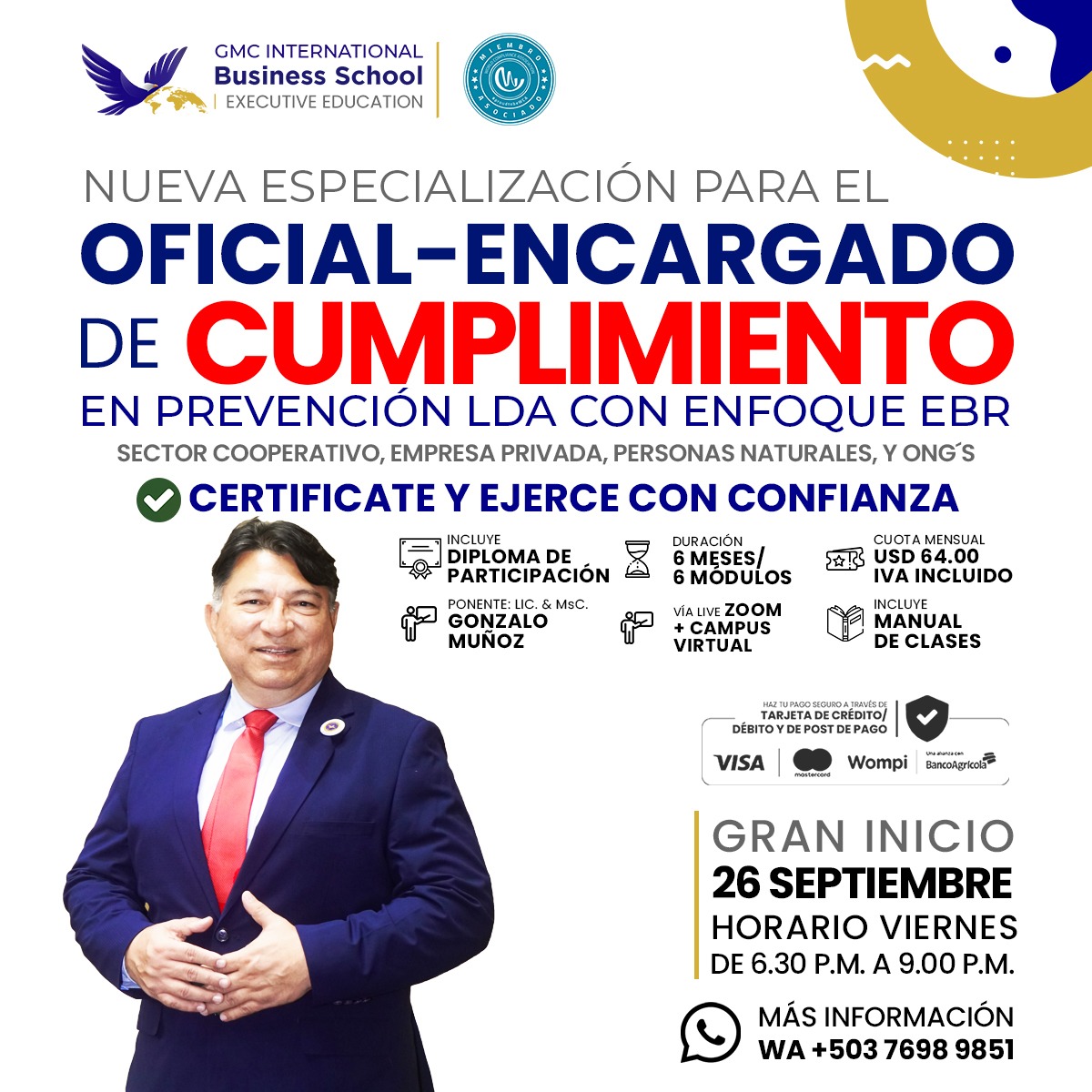 Matricula y Cuota 01 Especialización en Oficial Encargado de Cumplimiento